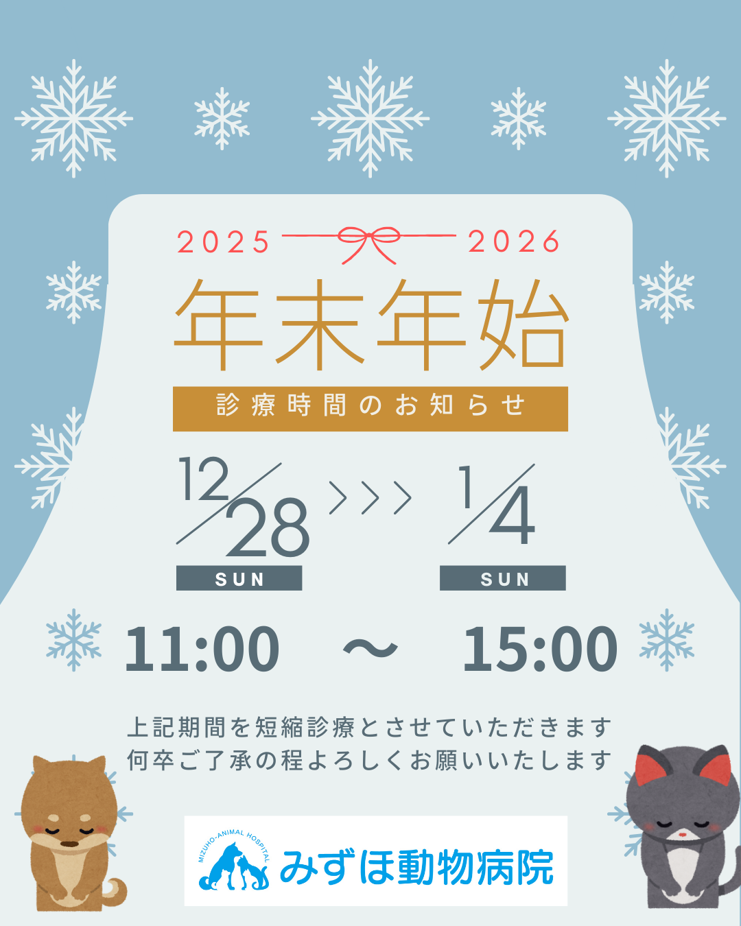 休診日や、ワンちゃんネコちゃんへの大切なお知らせなど、診療をご検討いただいている方へ情報を随時配信しております。